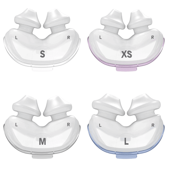 These nasal pillow inserts are colour coded and have left and right orientation for quick and easy fitting.